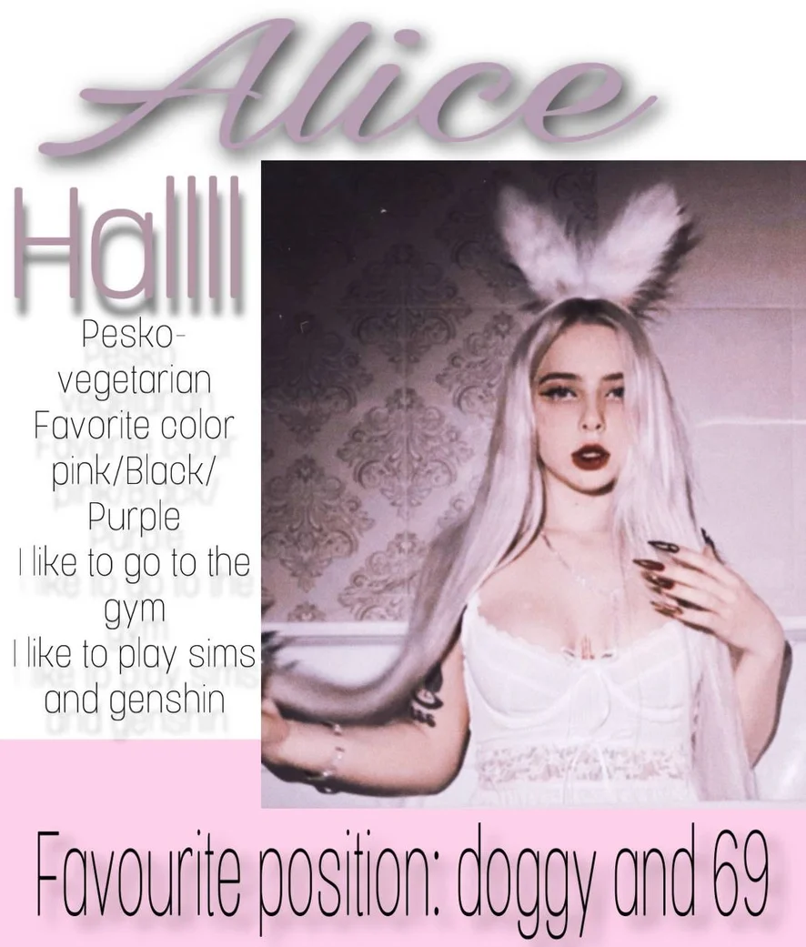 Hi, I'm Alice! What can I say about myself and my life? I really love my job, thanks to which I can meet wonderful people! And also all the animals in the world and especially sphinxes haha! I love going to the gym and spending time with my loved ones, I love pole dancing and heavy music, I just love tattoos and piercings! I love to read, if you are too, we can talk about it and in general, about everything in the world, except exact sciences, please, haha!