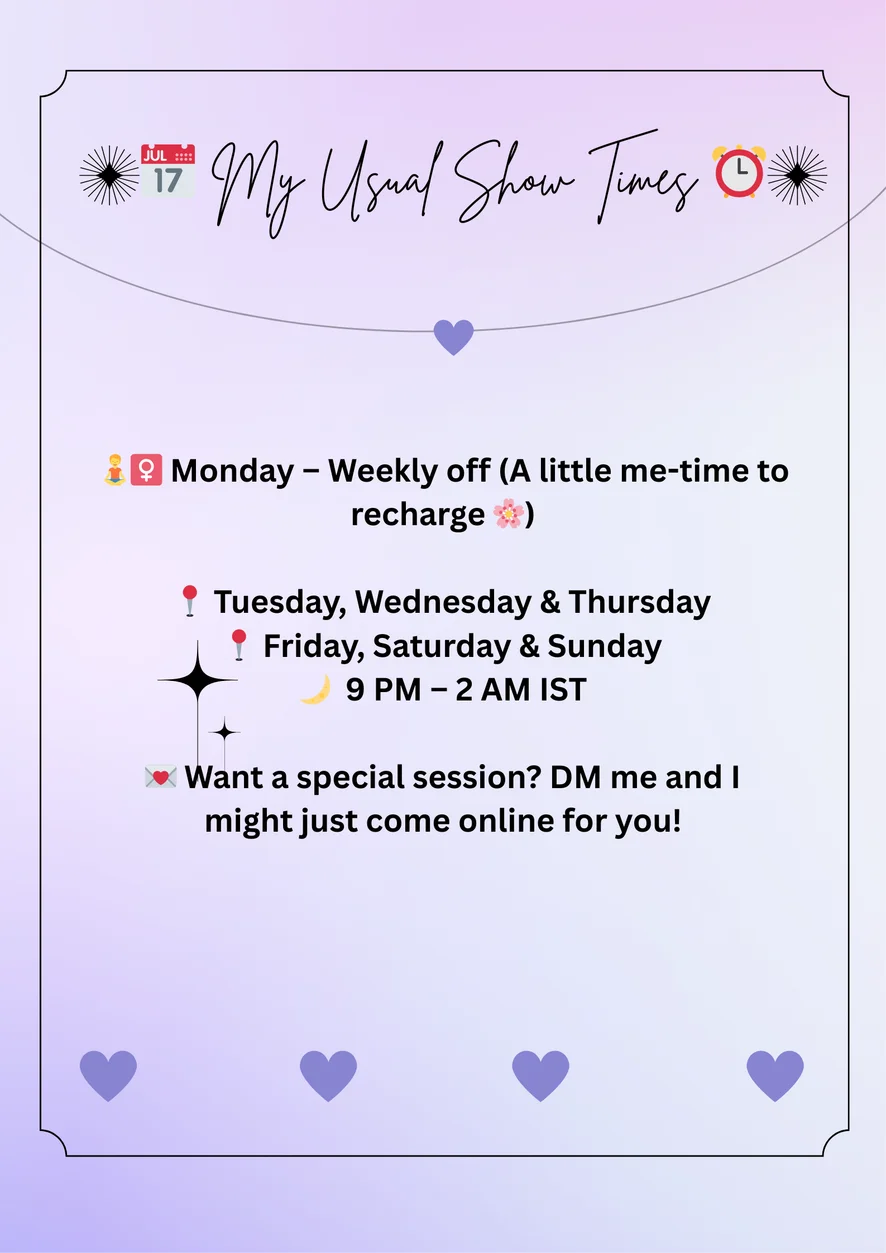 I’m Krisha (but you can call me your fav vibe 😜).I hope you didn’t read it as KRISHNA, FR I am tired correcting my name LMAO. I’m 23, living in Delhi NCR, and yes — I’m totally that introvert in real life but extrovert pro max online kinda girl. I joined Stripchat in February 2025, so yeah, I’m kinda new to this spicy world 😏 but loving every second of it.